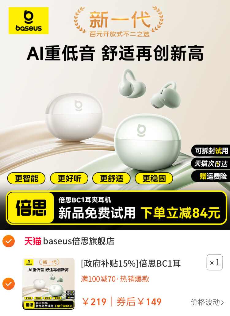 您的位置 :首页 / 优惠券 / 淘宝优惠券 [政府补贴15%]倍思BC1耳夹耳机蓝牙气骨传导开放式跑步2025年新款 到手价:149元 有效时间:长期有效 网购平台:淘宝 去购买 点击复制淘口令 [政府补贴15%]倍思BC1耳夹耳机蓝牙气骨传导开放式跑步2025年新款 【推荐理由】同类热推 【券面额】70元 【到手价】149.00元 【下单链接】17¥ MF937 WFX5f9j4DPB¥ https://m.tb.cn/h.SGAPJ4A [政府补贴15%]倍思BC1耳夹耳机蓝牙气骨传导开放式跑步2025年新款 优惠详情 [政府补贴15%]倍思BC1耳夹耳机蓝牙气骨传导开放式跑步2025年新款 【推荐理由】同类热推 【券面额】70元 【到手价】149.00元 【下单链接】https://s.click.taobao.com/oHjoRep 原图片 上一张 下一张 自动/暂停播放 相关产品 摩摩哒 M613 PRO 家用智 丝飘乳霜纸新生儿宝 维达抽纸24包棉韧压花 卡其猫馥桂兰馨24包商 漫花大包抽纸家用实 【李昀锐同款】清风 活力28香氛洗衣液留香 小漂漂酵素液除菌除 热门标签: 蓝牙耳机倍思BC1 上篇:倍思E3蓝牙耳机2025新款无线半入耳式长续航超小适用于果小米华为 下篇:美的养生壶办公室小型恒温烧水炖煮一体多功能玻璃煮茶器2025新款 温馨提示:您可查看更多:淘宝优惠券 ,本文链接:https://www.haowubang.net//html/yhq/taobao/6329.html 京东优惠券 海尔16L燃气热水器钜惠1619元 松下(Panasonic)松下按摩椅深米色MAC8 松下(Panasonic)日本松下按摩椅MAC9 MAC9雾灰蓝 进口ASKO雅士高烘洗机500元优惠券领取,更多优惠券在咨询客服 【京东】格力空调 1.5匹云佳pro 新一级能效 变频冷暖壁挂式卧室挂机 新品升级 省电空调 KFR-35GW/NhMa1BG 【京东】华凌空调 大1.5匹【大风口】双排神机二代舒适风变频冷暖挂机 超一级能效KFR-35GW/N8HE1Ⅱ国家补贴 会员充值 送月卡!夸克网盘SVIP超级会员双年卡24个月 【212元】包邮秒杀 淘金币抵扣109!爱奇艺黄金vip会员10个月 【107元】包邮秒杀 限购1件网易云音乐黑胶SVIP会员年卡 【96元】包邮秒杀 【官方直充】迅雷超级会员半年 【88元】包邮秒杀 优质素材:芒果/优酷年卡会员仅需57 福利价仅57元秒杀! 优质素材:爱奇艺黄金vip年卡12个月/10月卡 福利价仅88.7元秒杀! 外卖券 饿了么红包节天天领红包活动 淘宝闪购,爆品好价外卖红包 饿了么18.8极限爆涨红包 闪购新用户可领首单免单福利 饿了么外卖红包,社群专享,9.9元吃饱喝足