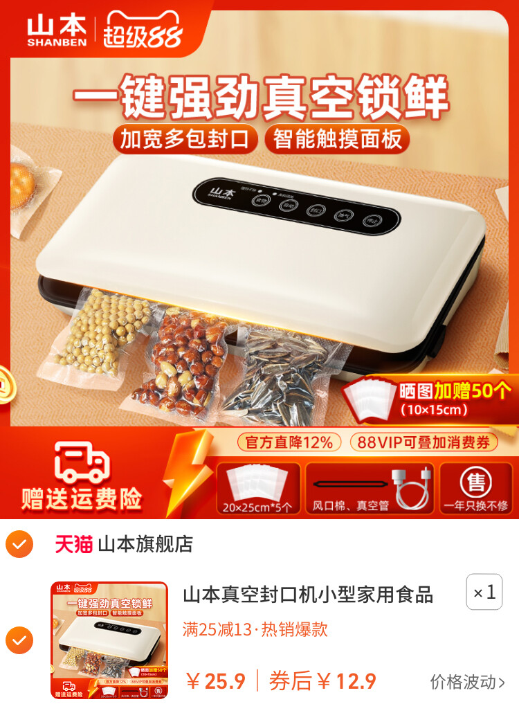 您的位置 :首页 / 优惠券 / 淘宝优惠券 山本真空封口机小型家用食品袋全自动抽空包装封塑密封零食保鲜机 到手价:12.90元 有效时间:长期有效 网购平台:淘宝 去购买 点击复制淘口令 山本真空封口机小型家用食品袋全自动抽空包装封塑密封零食保鲜机 【推荐理由】历史热推,超万人正在疯抢 【券面额】13元 【到手价】12.90元 【下单链接】29¥ MF937 2gyBf9QYe2j¥ https://m.tb.cn/h.StzklmN 山本真空封口机小型家用食品袋全自动抽空包装封塑密封零食保鲜机 优惠详情 山本真空封口机小型家用食品袋全自动抽空包装封塑密封零食保鲜机 【推荐理由】历史热推,超万人正在疯抢 【券面额】13元 【到手价】12.90元 【下单链接】https://s.click.taobao.com/XGMj9Sp 原图片 上一张 下一张 自动/暂停播放 相关产品 摩摩哒 M613 PRO 家用智 丝飘乳霜纸新生儿宝 维达抽纸24包棉韧压花 卡其猫馥桂兰馨24包商 漫花大包抽纸家用实 【李昀锐同款】清风 活力28香氛洗衣液留香 小漂漂酵素液除菌除 热门标签: 真空封口机 上篇:[政府补贴15%]倍思M3s蓝牙耳机降噪无线2025新款适用小米苹果OPPO 下篇:孕贝奶瓶消毒柜婴儿摇奶器泡奶机恒温水壶三合一体紫外线烘干专用 温馨提示:您可查看更多:淘宝优惠券 ,本文链接:https://www.haowubang.net//html/yhq/taobao/6338.html 京东优惠券 海尔16L燃气热水器钜惠1619元 松下(Panasonic)松下按摩椅深米色MAC8 【京东】华凌空调 大1.5匹【大风口】双排神机二代舒适风变频冷暖挂机 超一级能效KFR-35GW/N8HE1Ⅱ国家补贴 进口ASKO雅士高烘洗机500元优惠券领取,更多优惠券在咨询客服 【京东】格力空调 1.5匹云佳pro 新一级能效 变频冷暖壁挂式卧室挂机 新品升级 省电空调 KFR-35GW/NhMa1BG 松下(Panasonic)日本松下按摩椅MAC9 MAC9雾灰蓝 会员充值 送月卡!夸克网盘SVIP超级会员双年卡24个月 【212元】包邮秒杀 【官方直充】迅雷超级会员半年 【88元】包邮秒杀 优质素材:芒果/优酷年卡会员仅需57 福利价仅57元秒杀! 淘金币抵扣109!爱奇艺黄金vip会员10个月 【107元】包邮秒杀 限购1件网易云音乐黑胶SVIP会员年卡 【96元】包邮秒杀 优质素材:爱奇艺黄金vip年卡12个月/10月卡 福利价仅88.7元秒杀! 外卖券 饿了么外卖红包,社群专享,9.9元吃饱喝足 饿了么18.8极限爆涨红包 闪购新用户可领首单免单福利 饿了么红包节天天领红包活动 淘宝闪购,爆品好价外卖红包