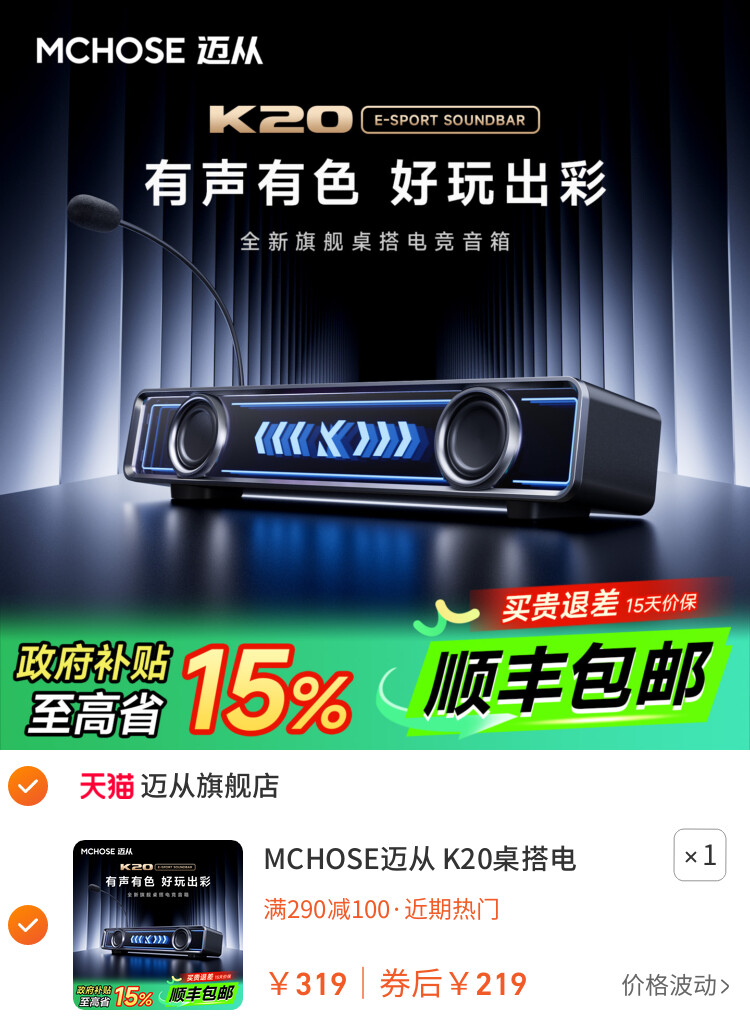 您的位置 :首页 / 优惠券 / 淘宝优惠券 MCHOSE迈从 K20桌搭电竞音箱家用电脑音响有线蓝牙桌面台式游戏 到手价:219元 有效时间:长期有效 网购平台:淘宝 去购买 点击复制淘口令 MCHOSE迈从 K20桌搭电竞音箱家用电脑音响有线蓝牙桌面台式游戏 【推荐理由】近7天浏览过万,历史热推 【券面额】100元 【到手价】219.00元 【下单链接】07¥ HU071 bmp9f9QQsif¥ https://m.tb.cn/h.SuasIvH MCHOSE迈从 K20桌搭电竞音箱家用电脑音响有线蓝牙桌面台式游戏 优惠详情 MCHOSE迈从 K20桌搭电竞音箱家用电脑音响有线蓝牙桌面台式游戏 【推荐理由】近7天浏览过万,历史热推 【券面额】100元 【到手价】219.00元 【下单链接】https://s.click.taobao.com/PlHo8Sp 原图片 上一张 下一张 自动/暂停播放 相关产品 摩摩哒 M613 PRO 家用智 丝飘乳霜纸新生儿宝 维达抽纸24包棉韧压花 卡其猫馥桂兰馨24包商 漫花大包抽纸家用实 【李昀锐同款】清风 活力28香氛洗衣液留香 小漂漂酵素液除菌除 热门标签: 电竞音箱MCHOSE迈从 上篇:奥克斯饮水机下置水桶立式家用全自动智能制冷热两用小型宿舍新款 下篇:先科茶吧机智能语音家用立式下置水桶多功能全自动2025新款饮水机 温馨提示:您可查看更多:淘宝优惠券 ,本文链接:https://www.haowubang.net//html/yhq/taobao/6347.html 京东优惠券 海尔16L燃气热水器钜惠1619元 松下(Panasonic)日本松下按摩椅MAC9 MAC9雾灰蓝 【京东】华凌空调 大1.5匹【大风口】双排神机二代舒适风变频冷暖挂机 超一级能效KFR-35GW/N8HE1Ⅱ国家补贴 【京东】格力空调 1.5匹云佳pro 新一级能效 变频冷暖壁挂式卧室挂机 新品升级 省电空调 KFR-35GW/NhMa1BG 进口ASKO雅士高烘洗机500元优惠券领取,更多优惠券在咨询客服 松下(Panasonic)松下按摩椅深米色MAC8 会员充值 送月卡!夸克网盘SVIP超级会员双年卡24个月 【212元】包邮秒杀 【官方直充】迅雷超级会员半年 【88元】包邮秒杀 限购1件网易云音乐黑胶SVIP会员年卡 【96元】包邮秒杀 优质素材:爱奇艺黄金vip年卡12个月/10月卡 福利价仅88.7元秒杀! 优质素材:芒果/优酷年卡会员仅需57 福利价仅57元秒杀! 淘金币抵扣109!爱奇艺黄金vip会员10个月 【107元】包邮秒杀 外卖券 饿了么18.8极限爆涨红包 饿了么红包节天天领红包活动 淘宝闪购,爆品好价外卖红包 闪购新用户可领首单免单福利 饿了么外卖红包,社群专享,9.9元吃饱喝足