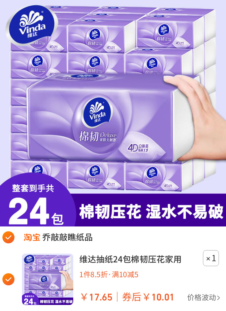 您的位置 :首页 / 优惠券 / 淘宝优惠券 维达抽纸24包棉韧压花家用纸巾大包整箱实惠装餐巾面巾纸卫生纸抽 到手价:10.01元 有效时间:长期有效 网购平台:淘宝 去购买 点击复制淘口令 维达抽纸24包棉韧压花家用纸巾大包整箱实惠装餐巾面巾纸卫生纸抽 【推荐理由】热门商品,同类热推 【券面额】5元 【到手价】10.01元 【下单链接】09¥ CZ356 lwgif9mbopL¥ https://m.tb.cn/h.Suc8WEJ 维达抽纸24包棉韧压花家用纸巾大包整箱实惠装餐巾面巾纸卫生纸抽 优惠详情 维达抽纸24包棉韧压花家用纸巾大包整箱实惠装餐巾面巾纸卫生纸抽 【推荐理由】热门商品,同类热推 【券面额】5元 【到手价】10.01元 【下单链接】https://s.click.taobao.com/C3NCyRp 原图片 上一张 下一张 自动/暂停播放 相关产品 摩摩哒 M613 PRO 家用智 丝飘乳霜纸新生儿宝 维达抽纸24包棉韧压花 卡其猫馥桂兰馨24包商 漫花大包抽纸家用实 【李昀锐同款】清风 活力28香氛洗衣液留香 小漂漂酵素液除菌除 热门标签: 纸巾 上篇:卡其猫馥桂兰馨24包商超同款超韧纸巾抽纸餐巾纸卫生纸家用实惠装 下篇:丝飘乳霜纸新生儿宝宝擦手面巾纸保湿纸巾擦手纸便携装柔纸巾家用 温馨提示:您可查看更多:淘宝优惠券 ,本文链接:https://www.haowubang.net//html/yhq/taobao/6391.html 京东优惠券 华凌1匹新一级空调特惠仅1599元 美的(Midea)烤箱100元优惠券 ASKO雅士高欧洲进口洗烘套装优惠券,10kg无胶圈门封洗衣机+10kg蝶形烘干衣机 长虹空调优惠券领取,大1匹新一级省电 语森忆意大利ROKERT火箭R58咖啡机 【京东】华凌空调 大1.5匹【大风口】双排神机二代舒适风变频冷暖挂机 超一级能效KFR-35GW/N8HE1Ⅱ国家补贴 会员充值 送月卡!夸克网盘SVIP超级会员双年卡24个月 【212元】包邮秒杀 优质素材:芒果/优酷年卡会员仅需57 福利价仅57元秒杀! 淘宝秒杀:【69元1年】优酷会员12个月 福利价仅69元秒杀! 淘金币抵扣14.6!爱奇艺vip黄金会员月卡 【14.6元】包邮秒杀 【69元1年】优酷会员vip12个月年卡 券后【69元】包邮秒杀 淘宝秒杀:【学生专享卡45】腾讯视频VIP会员三个月 福利价仅45元秒杀 外卖券 饿了么外卖红包,社群专享,9.9元吃饱喝足 饿了么百元红包,开学饿请客 高校超吃卡 淘宝闪购红包,领最高15元大额红包 饿了么红包节天天领红包活动 饿了么霸王餐红包,评价有礼单单返