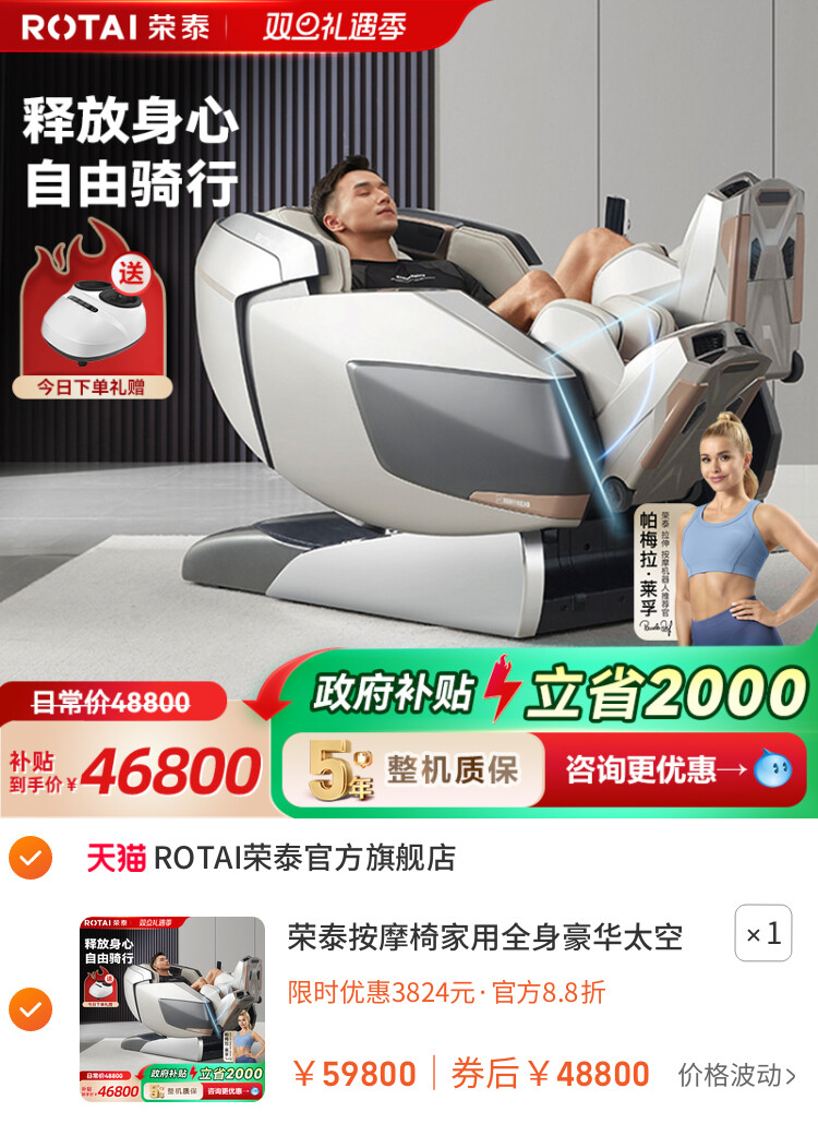 您的位置 :首页 / 优惠券 / 淘宝优惠券 荣泰按摩椅家用全身豪华太空舱全自动多功能按摩沙发RT8800MAX 到手价:48800元 有效时间:长期有效 网购平台:淘宝 去购买 点击复制淘口令 荣泰按摩椅家用全身豪华太空舱全自动多功能按摩沙发RT8800MAX 【推荐理由】热门商品 【到手价】48800.00元 【下单链接】39¥ HU293 14PLfwsBsNd¥ https://m.tb.cn/h.7VprNnl 荣泰按摩椅家用全身豪华太空舱全自动多功能按摩沙发RT8800MAX 优惠详情 荣泰按摩椅家用全身豪华太空舱全自动多功能按摩沙发RT8800MAX 【推荐理由】热门商品 【到手价】48800.00元 【下单链接】https://s.click.taobao.com/cIHSbxo 原图片 上一张 下一张 自动/暂停播放 相关产品 25年新款日本宫和按摩 【政府补贴15%】荣泰 荣泰按摩椅家用全身 【政府补贴15%】A39按 OSIM傲胜V3按摩椅家用 【政府补贴15%】荣泰 奥佳华7508Pro+按摩椅家 【政府补贴15%】奥佳 热门标签: 荣泰按摩椅荣泰荣泰家电 上篇:【政府补贴15%】A39按摩椅全自动智能电动按摩椅家用太空舱沙发 下篇:【政府补贴15%】荣泰按摩椅全身多功能太空舱豪华沙发RT7708SPlus 温馨提示:您可查看更多:淘宝优惠券 ,本文链接:https://www.haowubang.net//html/yhq/taobao/6895.html 京东优惠券 荣泰(RONGTAI)【补贴15%】按摩椅家用全身按摩太空舱全自动按摩沙发椅送老人礼物S56PRO S56PRO杏仁灰 奥克斯新款按摩椅最新优惠券领取,到手价2959元 荣泰按摩椅国补领取最低2880元抢购 慕思(de RUCCI)乳胶床垫床垫1.8x2米 独立筒弹簧双人卧室皇冠假日酒店款床垫 爱永恒舒适款/软硬适中-MCW1-032 [京东]穗宝(SYMBOL) 弹簧床垫100元优惠券 京东顾家家居按摩椅7折优惠,到手价才2543元 会员充值 送月卡!夸克网盘SVIP超级会员双年卡24个月 【212元】包邮秒杀 送月卡!夸克网盘SVIP超级会员双年卡24个月 【212元】包邮秒杀 【官方直充】迅雷超级会员半年 【88元】包邮秒杀 淘金币抵扣14.6!爱奇艺vip黄金会员月卡 【14.6元】包邮秒杀 淘金币抵扣109!爱奇艺黄金vip会员10个月 【107元】包邮秒杀 【69元1年】优酷会员vip12个月年卡 券后【69元】包邮秒杀 外卖券 饿了么18.8极限爆涨红包 饿了么百元红包,开学饿请客 高校超吃卡 淘宝闪购红包,领最高15元大额红包 饿了么霸王餐红包,评价有礼单单返 闪购新用户可领首单免单福利