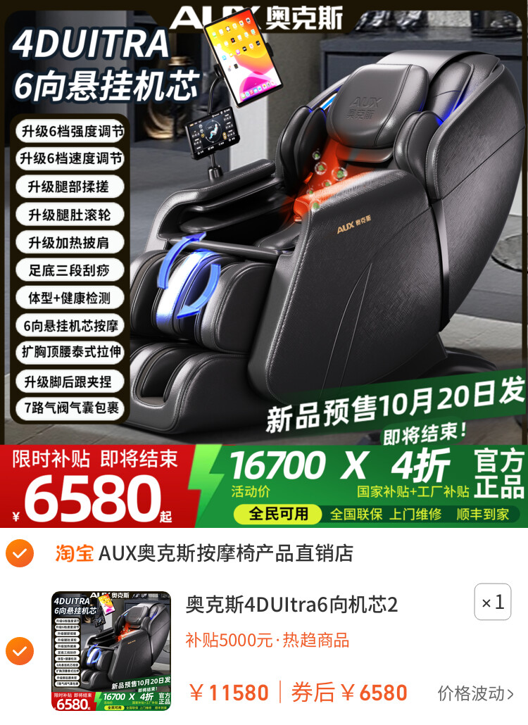 【下单链接】https://s.click.taobao.com/ebX6u2q按摩椅补贴、按摩椅优惠券、奥克斯按摩椅
